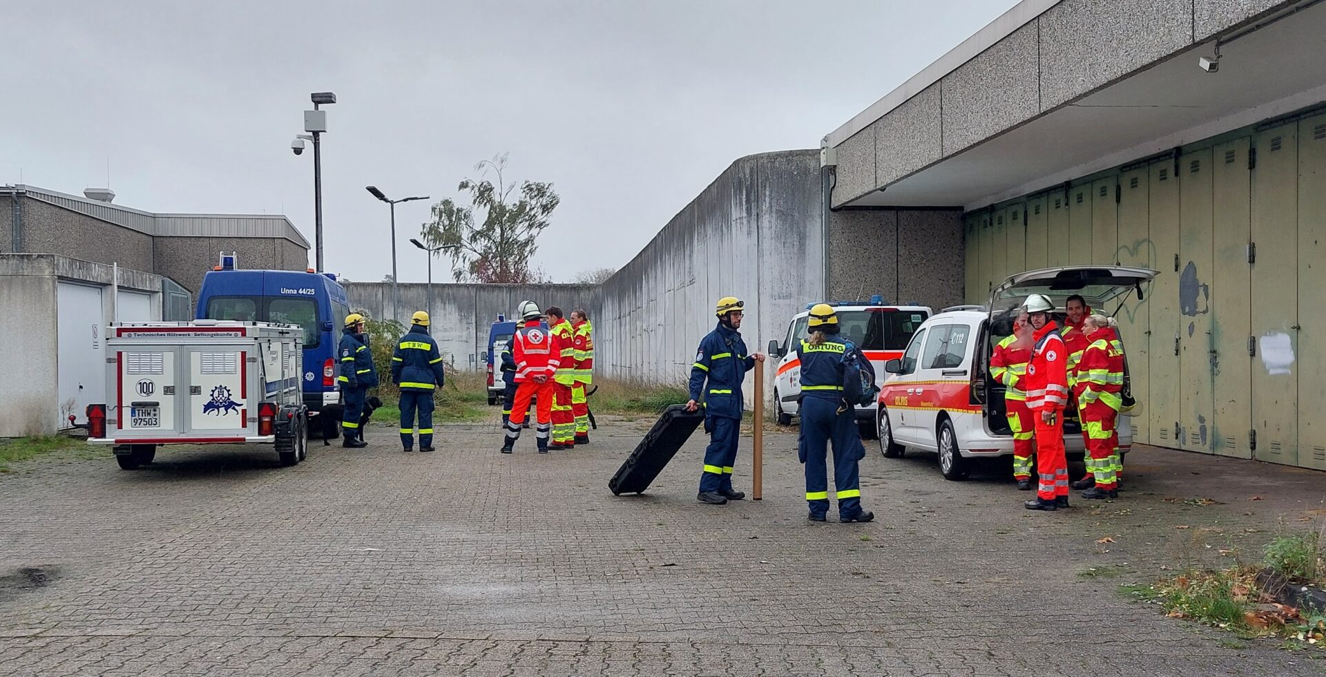 Gemeinsame Ortungsübung in der JVA Iserlohn: Einsatzkräfte von THW, DRK und DLRG trainieren Suche nach Vermissten