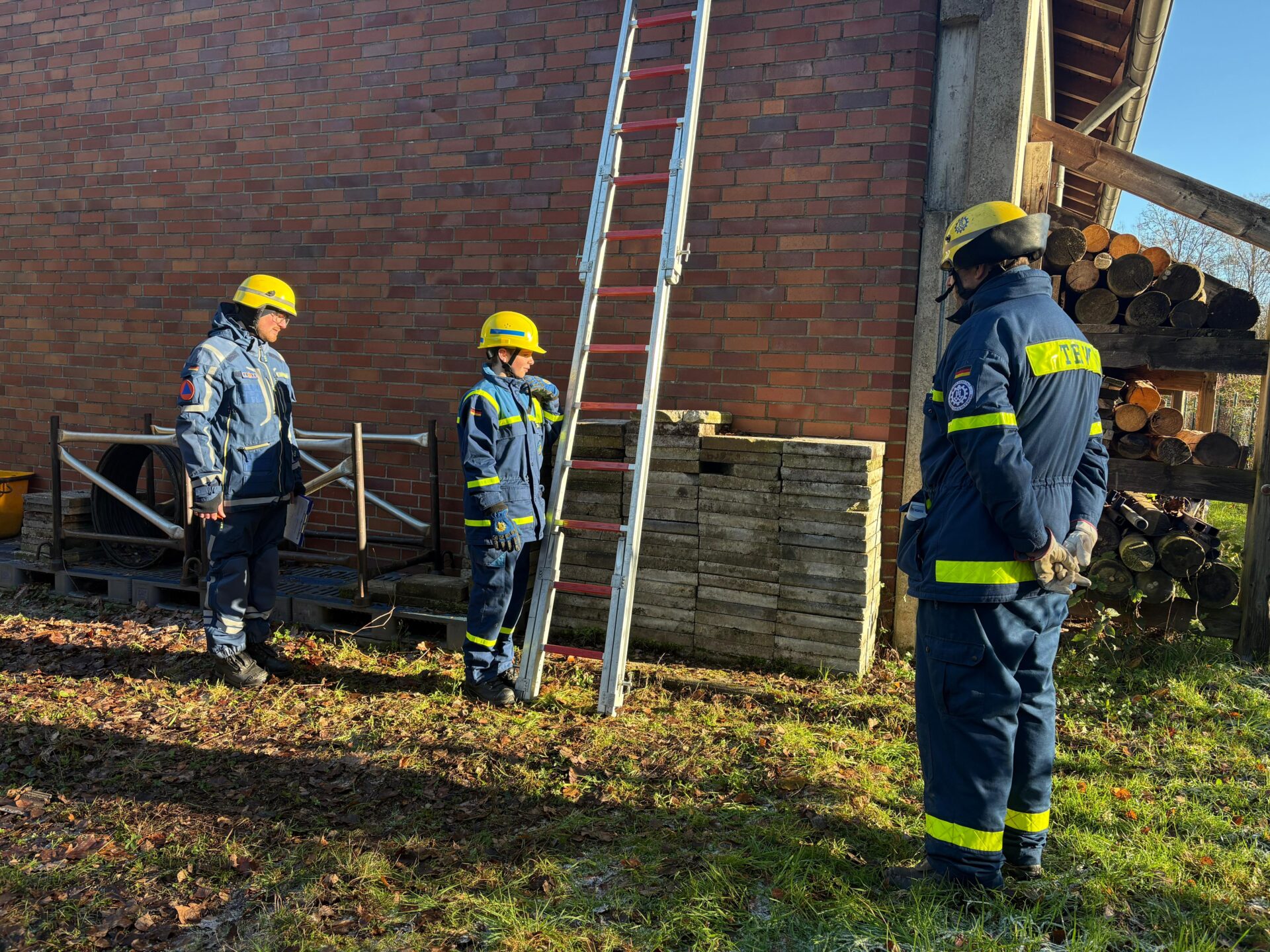 - Leitern: Stabil anlegen – die richtige Aufstellung von Leitern wird praktisch geprüft. (Foto: THW)
